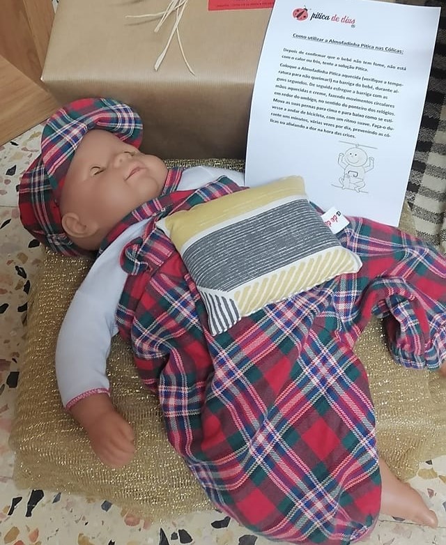 Tamanho Cólicas Bebé: Almofada Térmica indicada para alívio das cólicas dos bebés e aquecimento do berço. Aquecem-se no micro-ondas, aplicam-se na barriga do bebé, e de seguida faz-se uma massagem na barriga.
